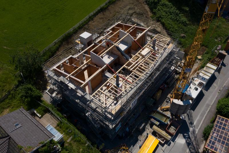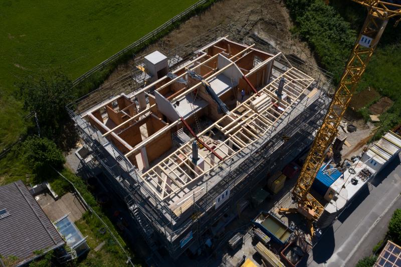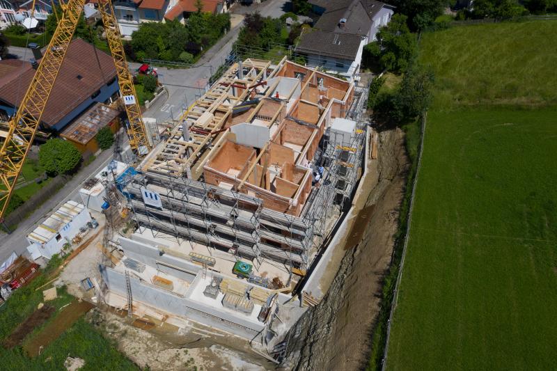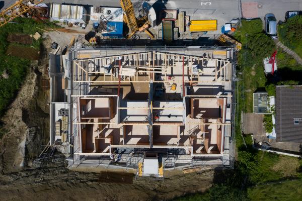 Bei diesem außergewöhnlichen Mehrfamilienwohnhaus haben wir die Disziplinen Bauphysik, Statik und Brandschutz bearbeitet. Die Besonderheit des Gebäudes liegt in der Form des Daches, welche durch einen Holzträgerrost mit Stahlbauteilen und gekrümmten Stahlträgern mit veränderlicher Bauteilhöhe realisiert wurde.